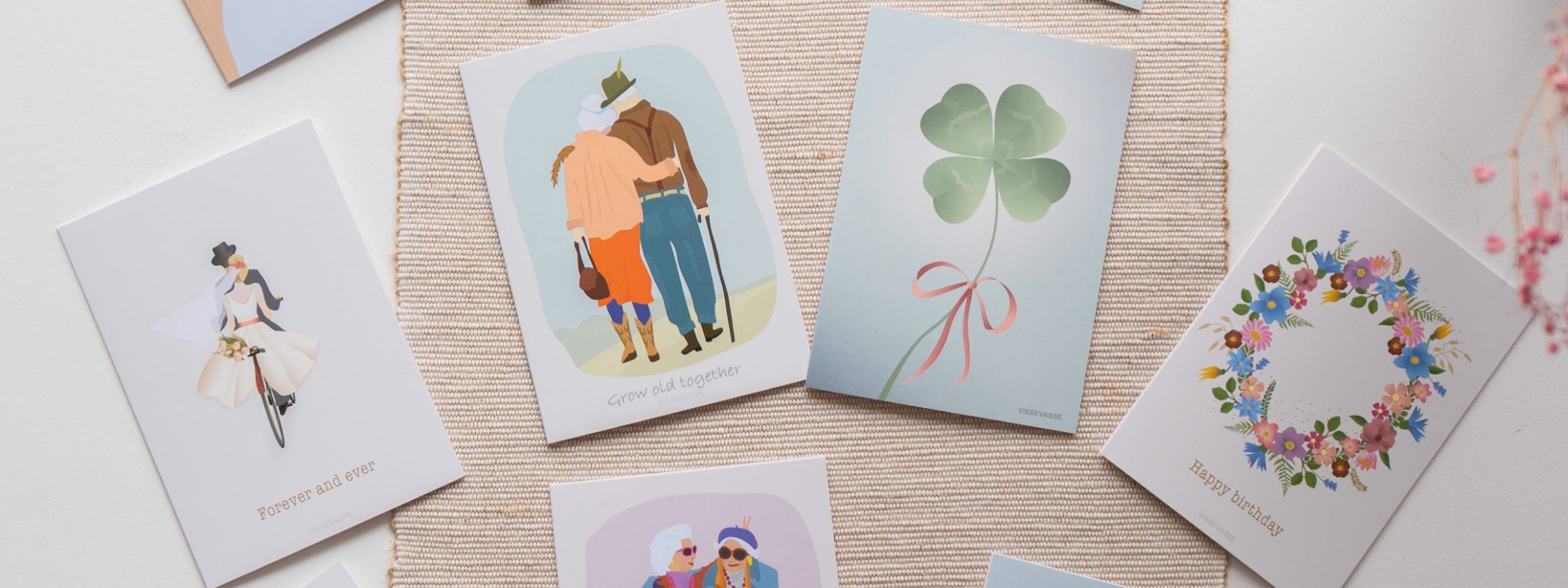 Findes der noget bedre, end når der dumper et postkort ind af brevsprækken? Godt gemt mellem reklamer og kedelige regninger. Måske et det en invitation til et bryllup eller en fødselsdagshilsen fra farmor med en krøllet hundredelap i. Det sker desværre ikke så ofte længere, men det vil vi gerne være med til at ændre på, så derfor har vi designet en masse kort til alle anledninger. Så du kan altid finde et, når du mangler et kort til konfirmanden, studenten eller fødselaren eller bare et kort, der siger TAK.