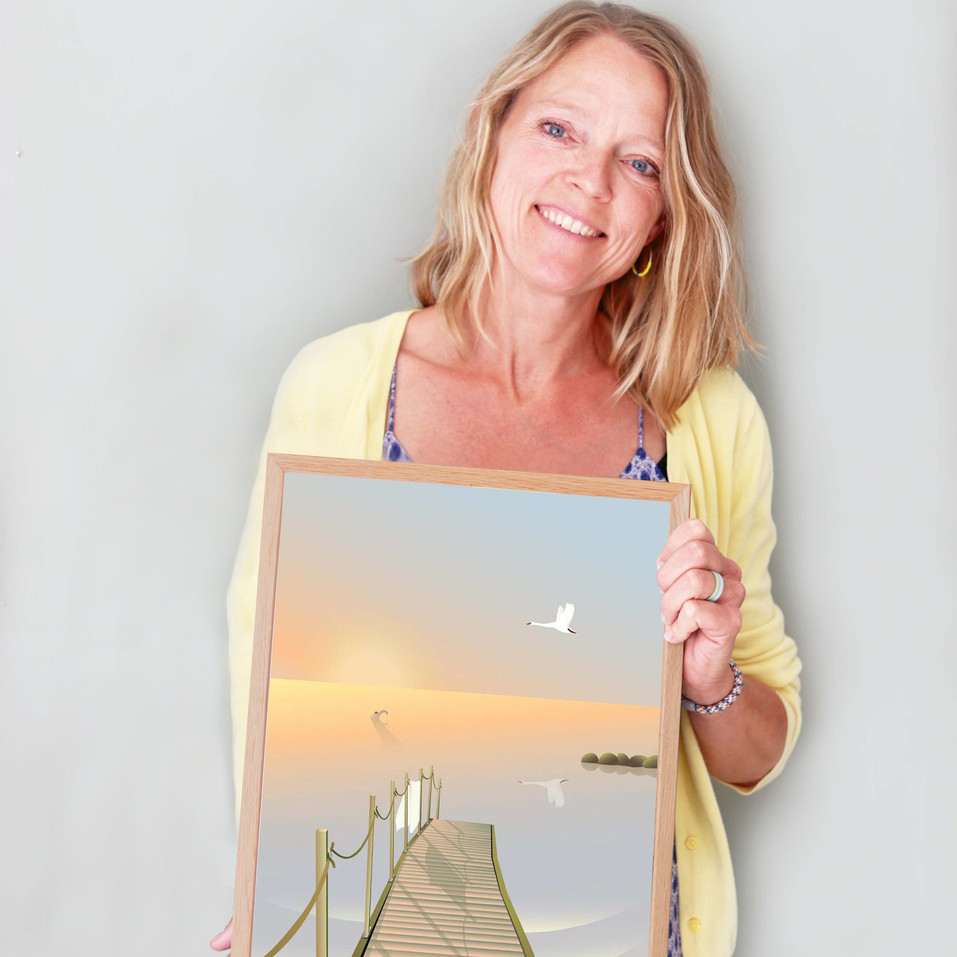 Når Dorthe tegner plakater, går hun efter farver, der giver et balanceret udtryk, så du kan få en følelse af ro og harmoni i dit hjem.